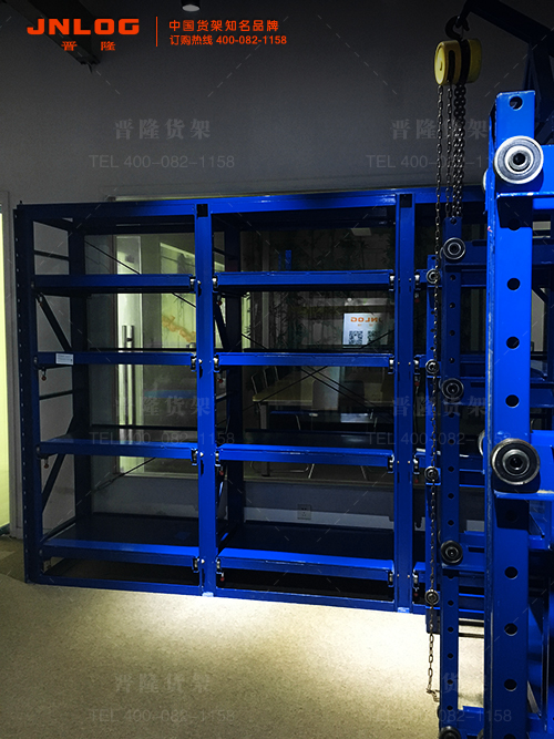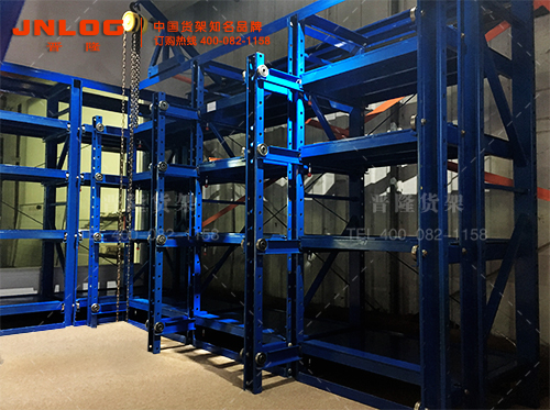產品簡介:模具貨架也可稱之為模具架或抽屜式貨架,主要存放各種模具物品,根據層載能力要求分為輕型模具貨架和重型模具貨架。貨架頂部可配置移動葫蘆車,以方便模具的起吊。