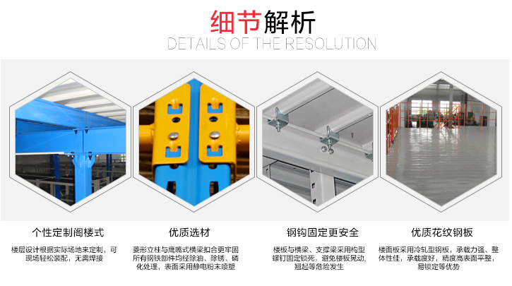 產品尺寸:倉庫閣樓貨架立柱間距通常在4~6米以內,一樓高3米左右,二、三樓高2.5米左右,立柱通常采用方管或圓管制成,主、副梁通常用H型鋼制成,鋼構平臺樓面板通常采用冷軋型鋼樓板、花紋鋼樓板、鋼格柵等,樓面載重通常在每平米1000KG以內.樓面載重1000kg/㎡以上尺寸只是就常規而言,具體的詳細尺寸以客戶的倉庫實際平面為準。